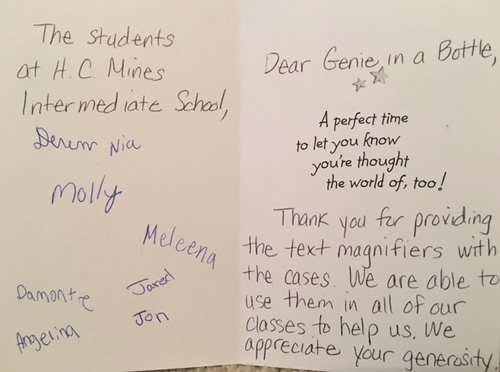 even been able to provide magnification bars to assist with reading all kinds of materials at Howland Schools.